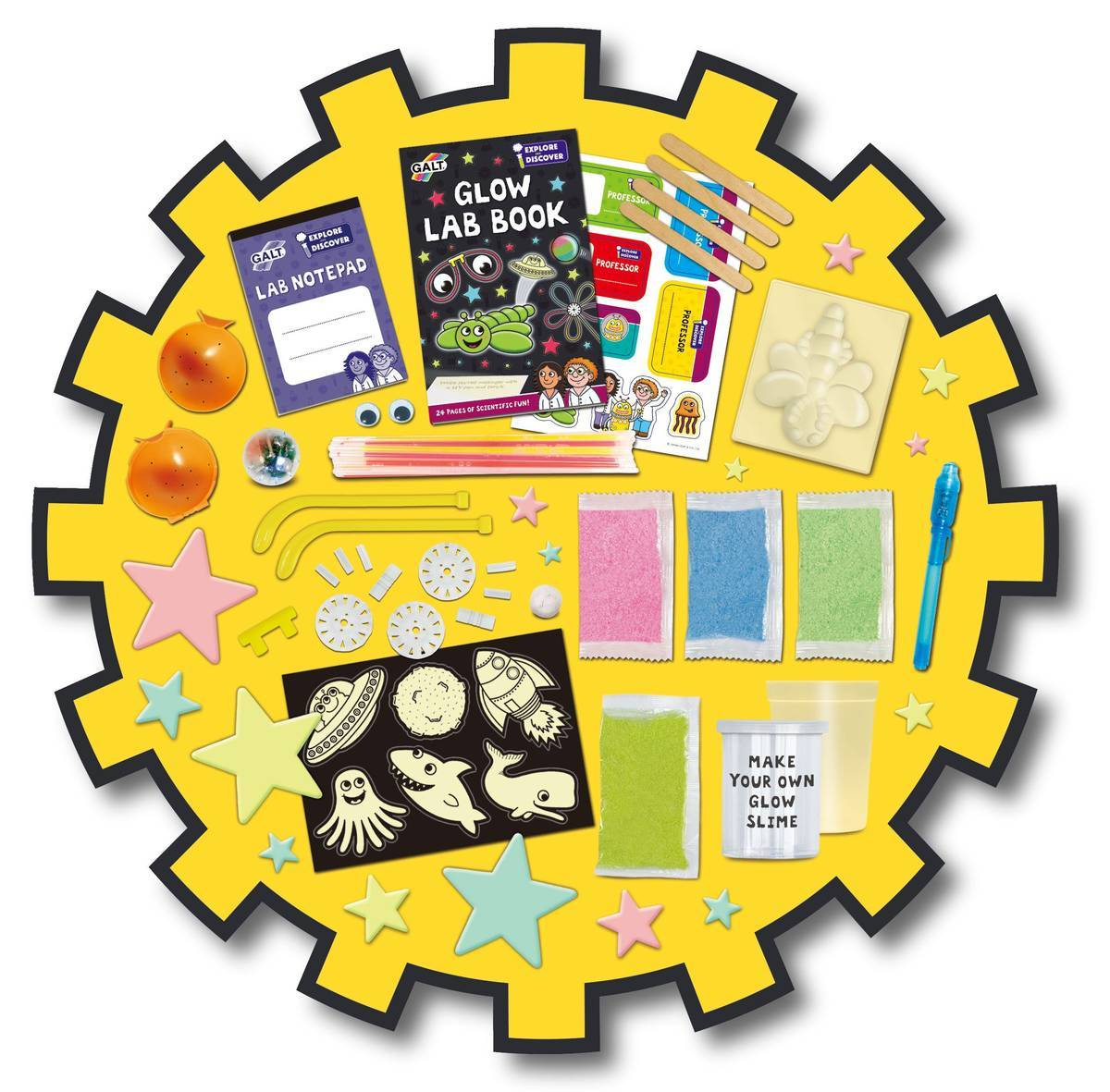 Vei putea sa faci experimente cu betisoare fluorescente, sa iti faci singur o mingiuta fluorescenta si sa modelezi o insecta gelatinoasa care straluceste in intuneric.