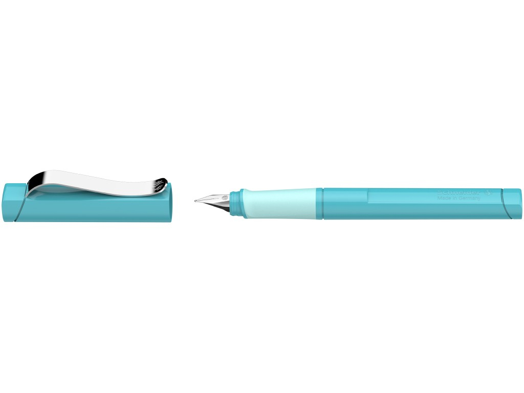 Se inchide sigur si eficient cu un capac prin apasare, ce este prevazut cu o clema din metal, argintie, ce contrasteaza cu restul corpului. potrivita pentru atasare la agenda sau mapa.