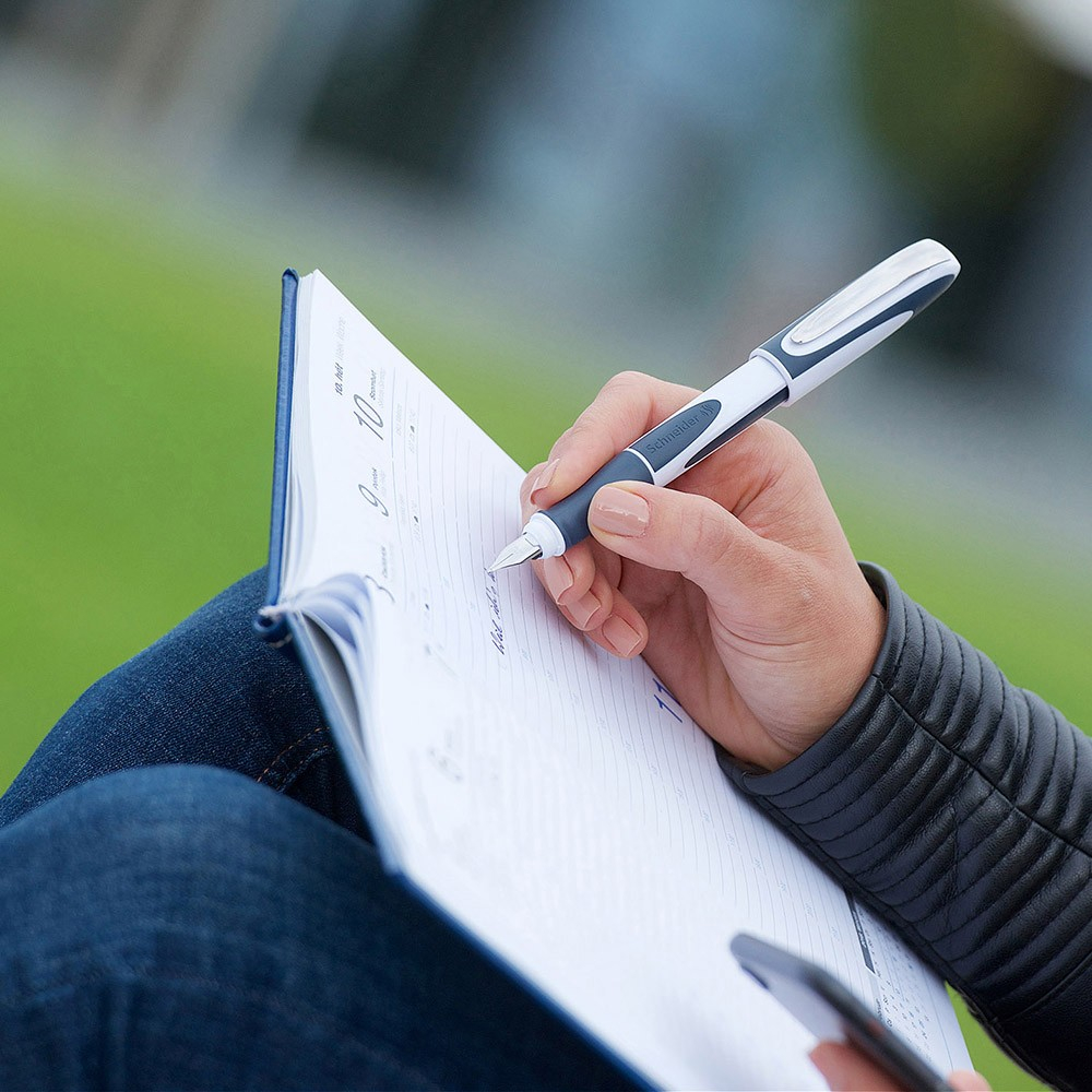 Penita este fabricata din otel inoxidabil, cu varf de iridiu, cu grosime de scriere medie. Functioneaza cu patroane standard de cerneala.