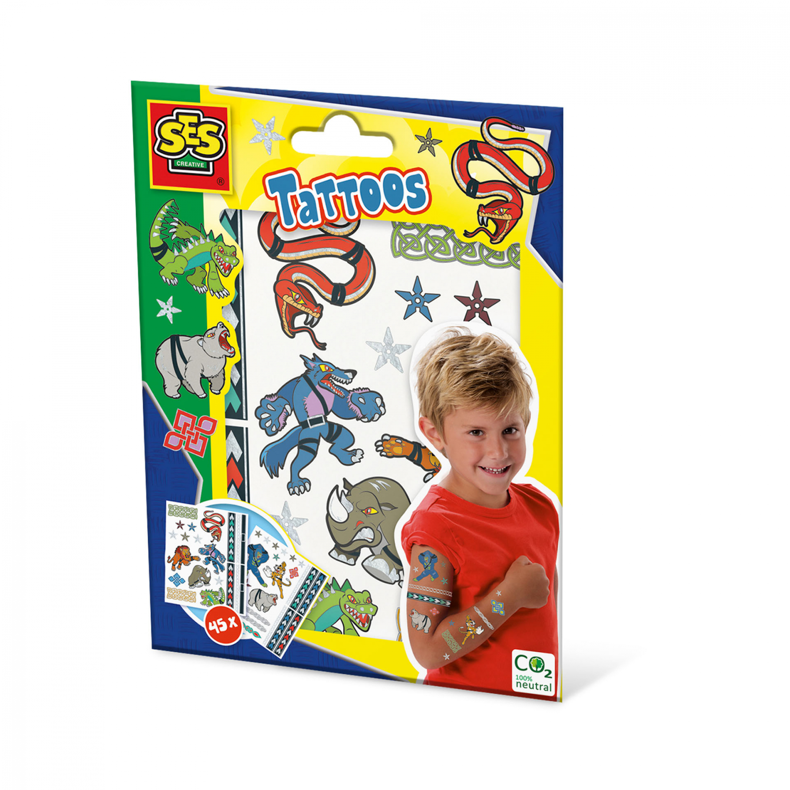 Setul contine 45 de tatuaje temporare ale razboinicilor animale, tribale, stele si alte modele. Tatuajele sunt usor de aplicat, sunt testate cosmetic si sunt, de asemenea, usor de spalat de pe piele.