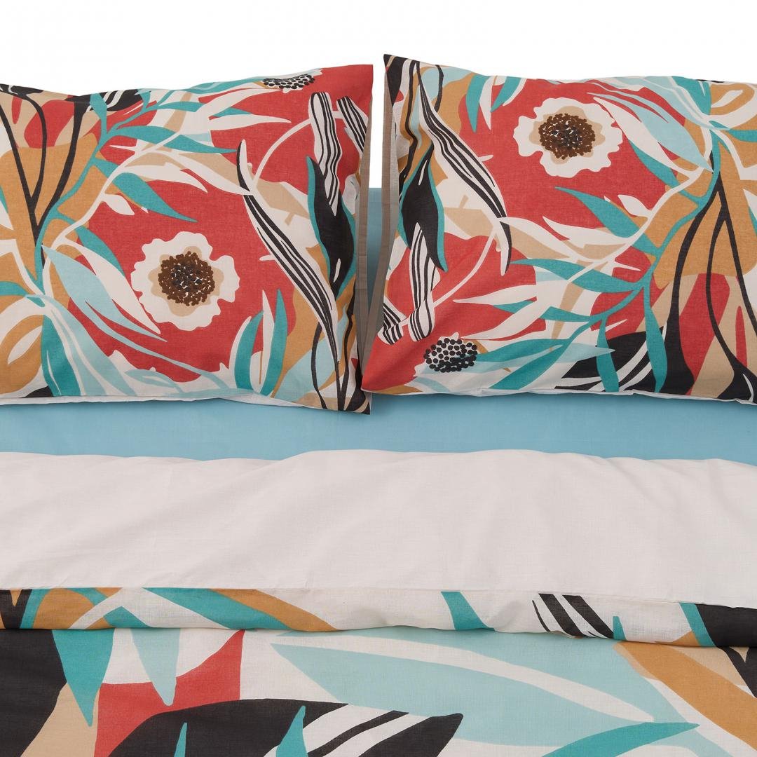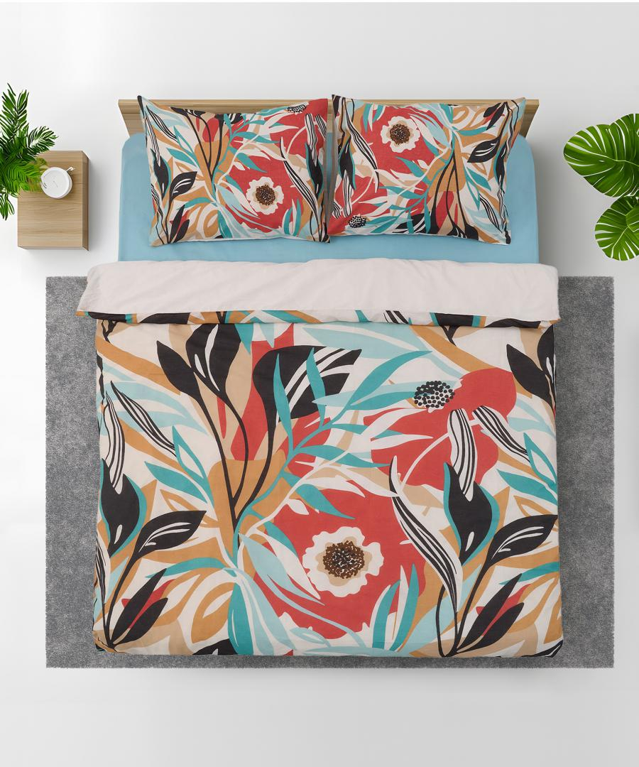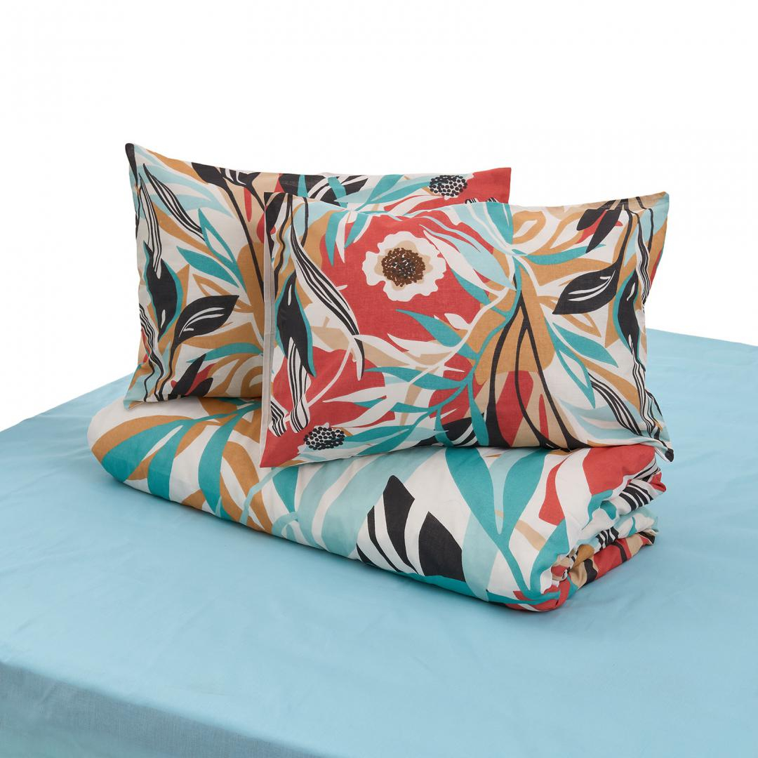 Lenjerie de pat dubla din 100% bumbac, densitate 132TC. Dimensiuni produs: 2 fete de perna 50x70 cm , cearceaf pilota 180x200 cm, cearceaf pat 200x220 cm. Fetele de perna au sistem de inchidere tip plic, cearceaful de pilota are sistem de inchidere cu nasturi