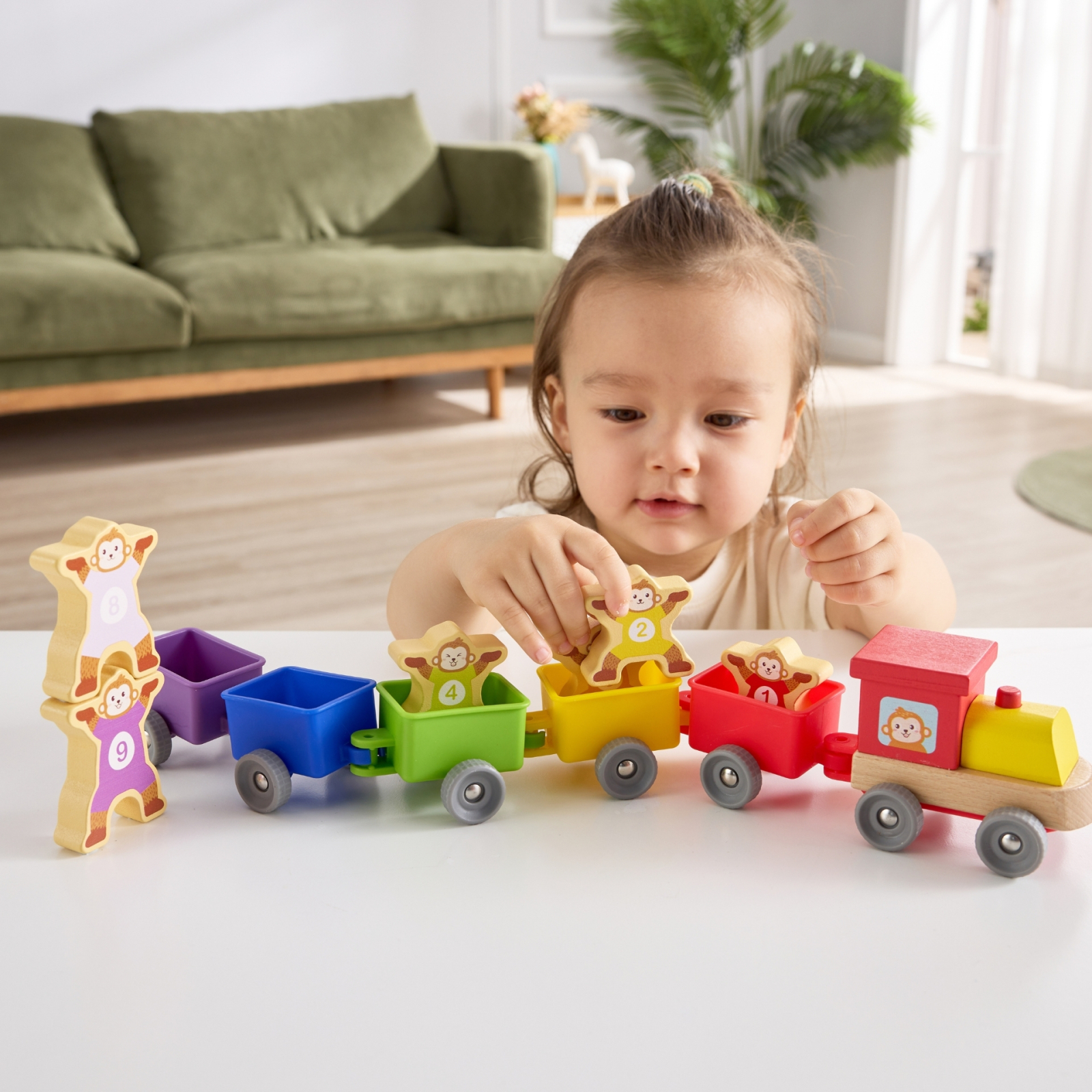 Cu 10 maimute obraznice asezate la bordul unui tren, poti sa le potriviti culorile cu vagonul potrivit sau sa le stivuiti impreuna? Cu culori stralucitoare si forme groase, aceasta jucarie este perfecta pentru ca cei mici sa-si dezvolte recunoasterea culorilor si abilitatile numerice._x000D_ Acest set este conceput pentru a inspira imaginatia, dezvolta recunoasterea culorilor si abilitatile motorii fine si numerice._x000D_ Carucioarele vin in 5 culori stralucitoare pentru a mentine creierele mici angajate si distrase._x000D_ Acest set include 10 maimute colorate si o locomotiva cu 5 vagoane colorate._x000D_ Fabricat din lemn de calitate si materiale sigure pentru copii, cu finisaje non-toxice._x000D_ Cu 10 maimute obraznice asezate la bordul unui tren, poti sa le potriviti culorile cu vagonul potrivit sau sa le stivuiti impreuna? Cu culori stralucitoare si forme groase, aceasta jucarie este perfecta pentru ca cei mici sa-si dezvolte recunoasterea culorilor si abilitatile numerice._x000D_ _x000D_ Dimensiuni: L: 45.6, l: 6, H: 7 cm,_x000D_ Dimensiuni cutie: L: 48, l: 7, H: 12 cm.