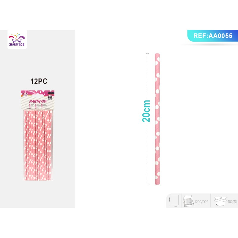 Paie de baut PartyGo, 20cm, buline albe, roz, AA0055, set 12 buc